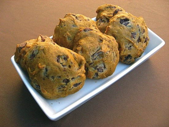 - Combine flour, oats, baking soda and cinnamon; stir into creamed mixture alternately with pumpkin. Fold in chocolate chips.